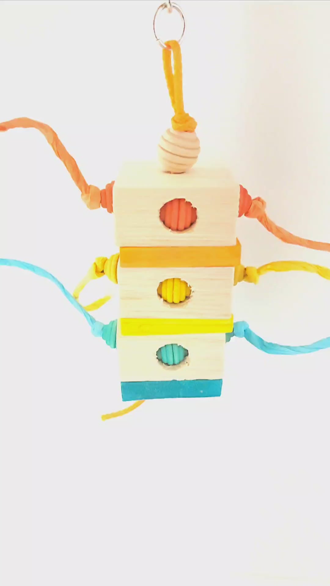 Get ready to play with "Velma" by Bite Me Birdie! This 8"x4" toy features chunky balsa and pine blocks, beehive beads, and a wooden wheel on poly rope. (Caution: may cause a sudden burst of energy and fun for your bird!)