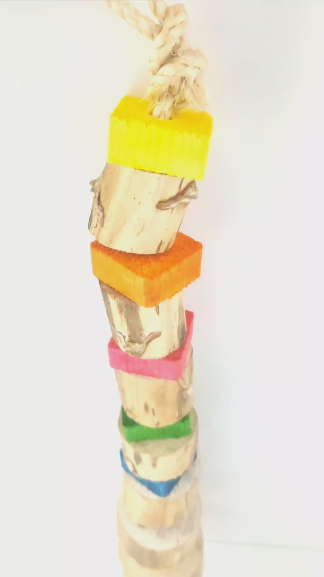 Get ready for a wild time with Koala by Jungle Toys! This playful toy is over 16" long and features a stacked combination of soft yucca chunks and soft pine pieces. Hand-crafted in the USA and suspended on a thick sisal rope, Koala is the perfect addition to your feathered friend's playtime.