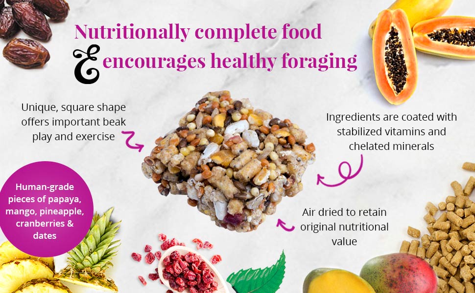 • A nutritionally complete parrot food formulated by top avian veterinarians, avian nutritionists, and avian behaviorists