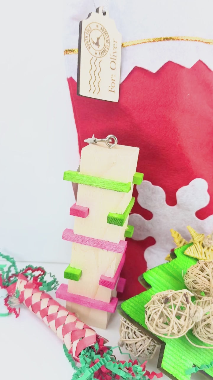 Deck the perches with joy this holiday season! This festive Christmas stocking bundle brings five delightful toys perfect for keeping your feathered friend entertained throughout the holidays.